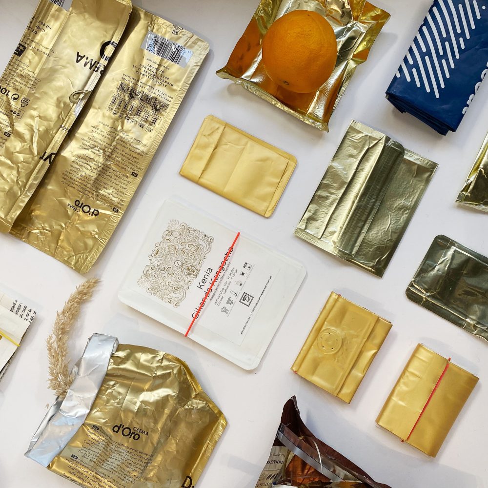 In dem Workshop geht es um Experimente zu „Form und Funktion“ für nützliche und unnütze Dinge aus gebrauchten Aromaschutzverpackungen – egal ob Tasche, Vase oder Skulptur. Die Objekte werden mit einem Folienschweißgerät angefertigt.